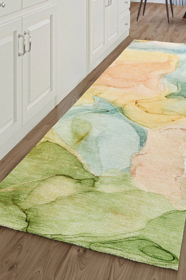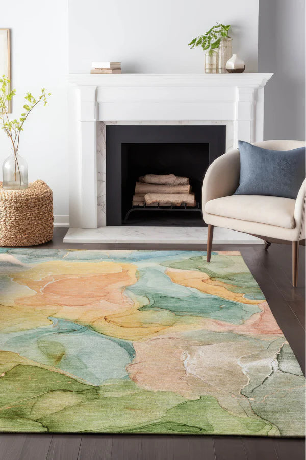 Inspired by alcohol ink art techniques, these designs incorporate soft tonal colors to a modern aesthetic. Luxuriously soft, the plush microfiber pile with canvas backing makes this rug a comfort to stand, sit, or lay on.